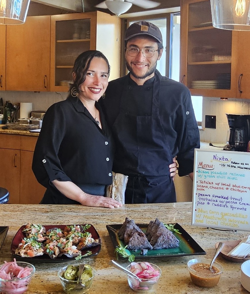 Nixta was born from an exploration into reconnecting with ancestral foods and a decolonial approach to diet, health and spirituality. Andrew, Amber and friends were growing corn and other local seeds, and learning how to hunt and forage in Northern NM. Then in 2023 he received a small arts grant to teach free cooking workshops on Nixtamalization and bio-regional foods. Following the workshop series, they continued their work, offering more classes, providing catering and private chef services, and selling tacos, tamales, tortillas and masa-based street foods at pop-up markets and other local events.