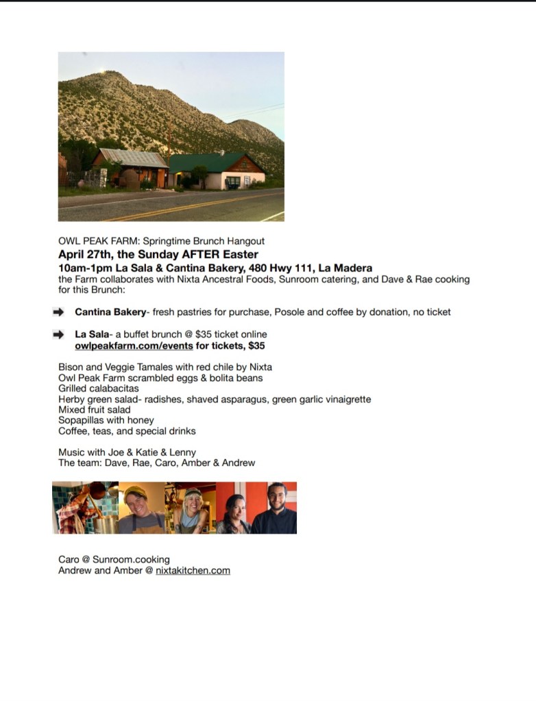 Menu featuring Una Familia Farms blue corn and fresh produce.