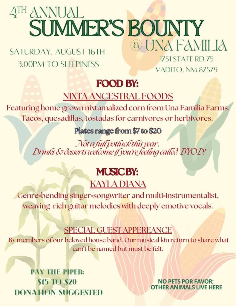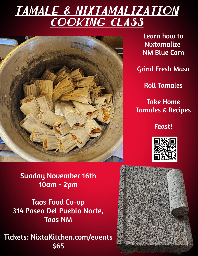 Every Saturday this October find us selling Tamales at the Taos Farmers Market. Featuring masa made from a variety of local corns, and meat and vegetable fillings from local farmers.